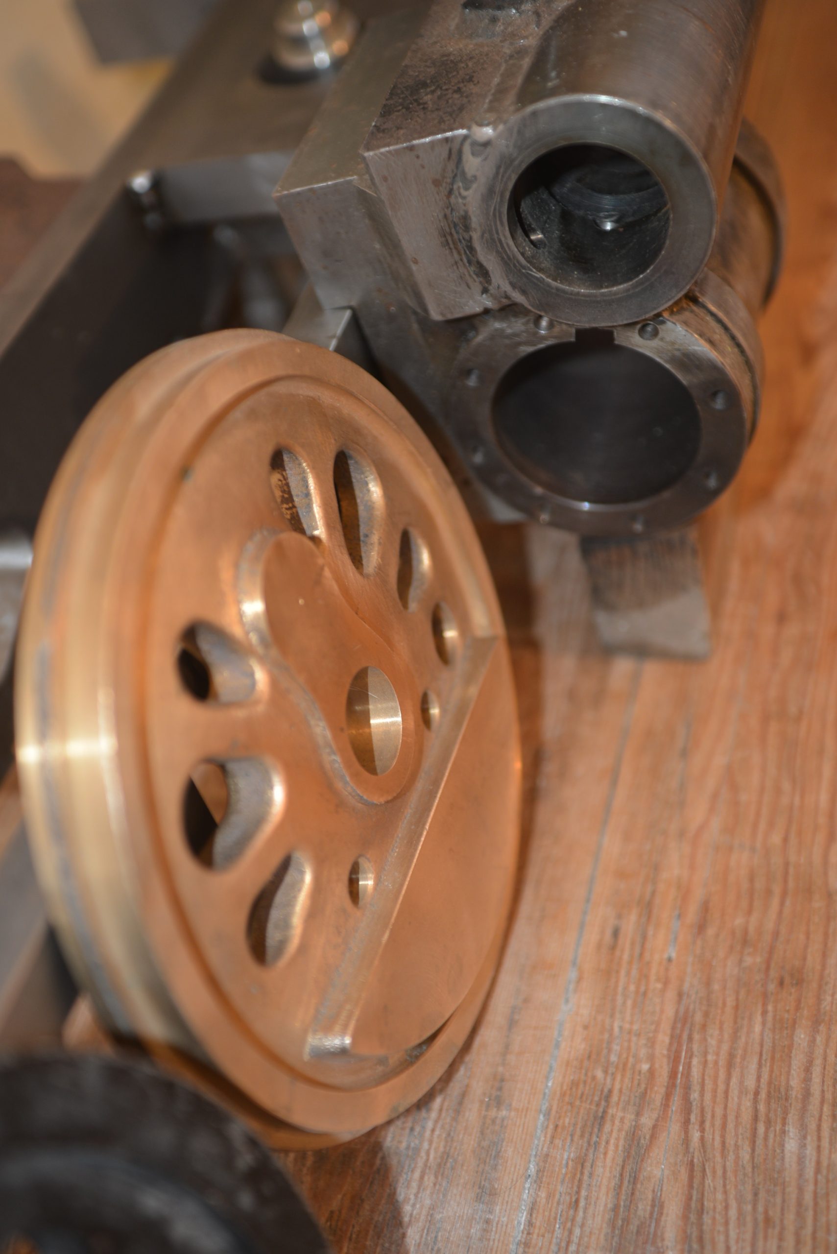 Une roue motrice en bronze coulée chez Porterie mais beaucoup trop chère à réaliser en 8 exemplaires.